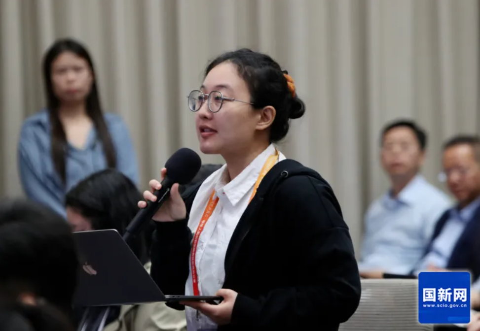 美国国际市场新闻社记者提问(赵一帆 摄)
